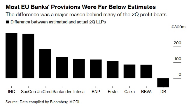 欧盟其它多数银行也出现了类似的趋势,几乎所有银行的利润都高于市场预期,而信贷损失准备金则低于分析师预期。