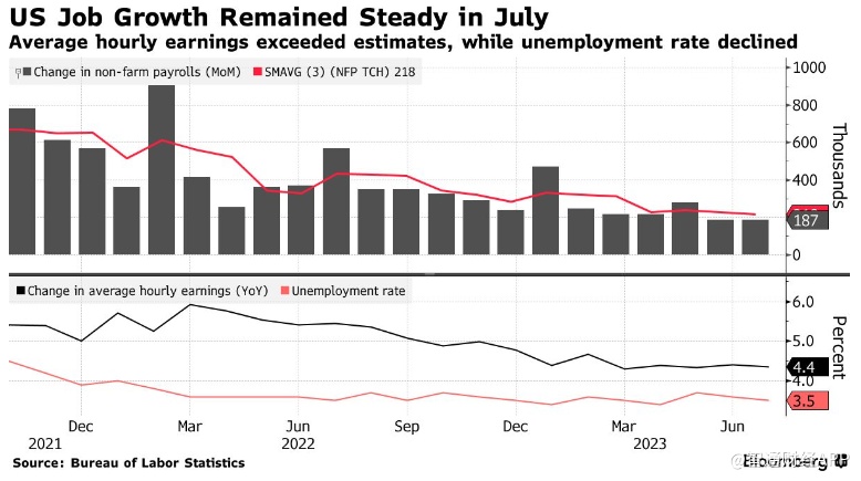 美国劳工统计局的报告显示,7月份美国的就业增长虽然稳健,但比年初放缓了很多。美联储官员一直在寻求减缓经济增长速度,以达到降低通货膨胀的目的。