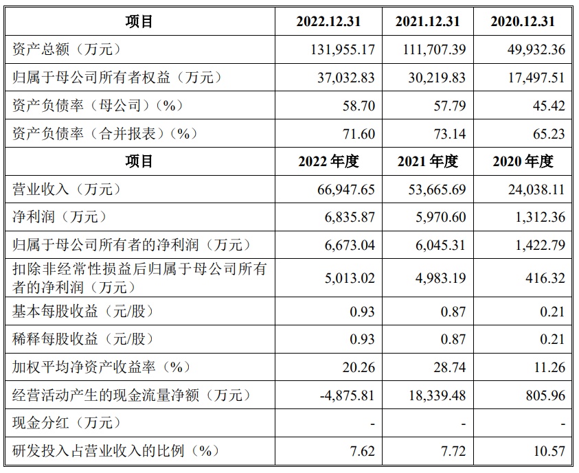财务方面,于2020年度、2021年度及2022年度,信宇人实现营业收入分别约为2.40亿元、5.37亿元、6.69亿元。同期,归属于母公司所有者的净利润分别约为1422.79万元、6045.31万元、6673.04万元人民币。