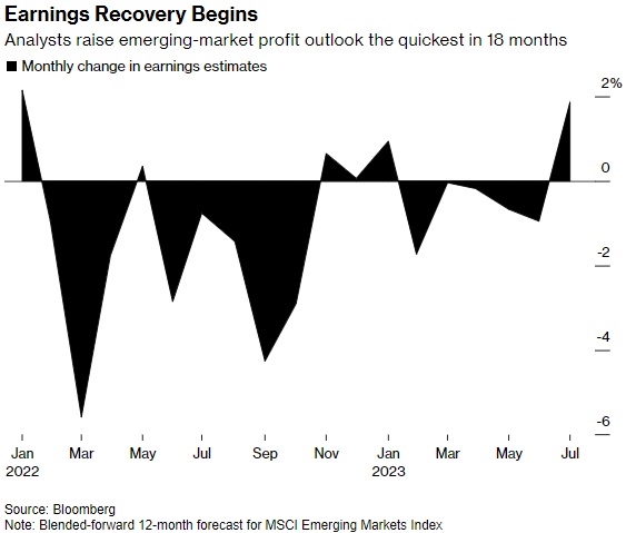 宏观背景也在向有利于发展中国家的方向倾斜。未来3年,新兴经济体的增长速度预计将比发达国家快近3个百分点,其中中国和印度增速最快。数据显示,分析师们以18个月来最快的速度上调了7月份的盈利预测。