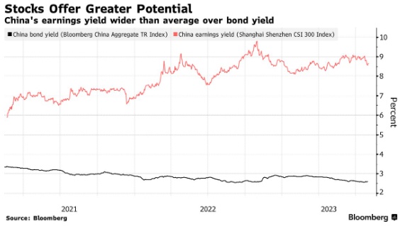 在一些新兴市场,投资者被股票所吸引,因为它们的潜在回报远高于债券。例如,中国沪深300指数的收益率(预期利润占股价的百分比)为8.6%。中国债券的利率为2.6%。这一差距在过去两年翻了一番。
