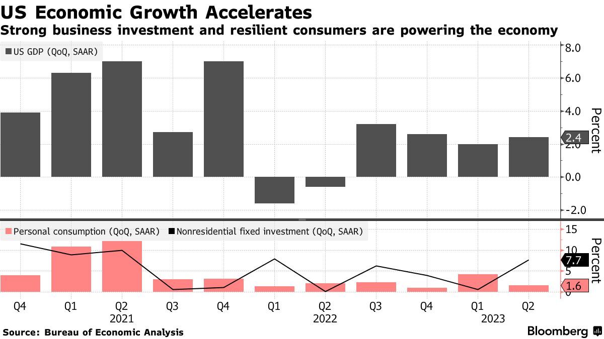 这些数据均显示劳动力市场仍然紧俏且相对健康,加之随着美国通货膨胀率超预期下降,众多空缺的工作岗位以及强劲的薪资仍然能够支撑着美国经济的“大动脉”——消费支出,进而预示着美国经济“软着陆”希望越来越大。