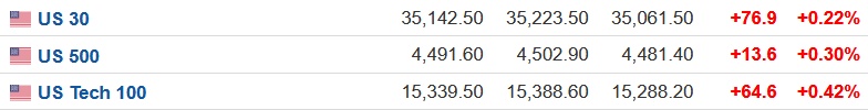 1.8月7日(周一)美股盘前,美股三大股指期货齐涨。截至发稿,道指期货涨0.22%,标普500指数期货涨0.30%,纳指期货涨0.42%。