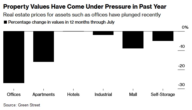 今年以来,借贷成本的上升使商业地产成为经济中受冲击最严重的领域之一。房地产销售、尤其是写字楼销售急剧放缓,这使得房东和贷款机构几乎没有什么指标来确定某些资产的价值。在缺乏交易的情况下,利益相关者正密切关注着市场,看看银行最终会以什么价格出售部分贷款。