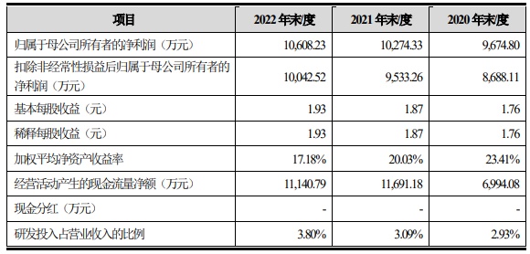 财务方面,于2020年度、2021年度及2022年度,协昌科技实现营业收入分别约为4.84亿元、5.25亿元、5.37亿元。同期,归属于母公司所有者的净利润分别约为9674.80万元、1.03亿元、1.06亿元人民币。