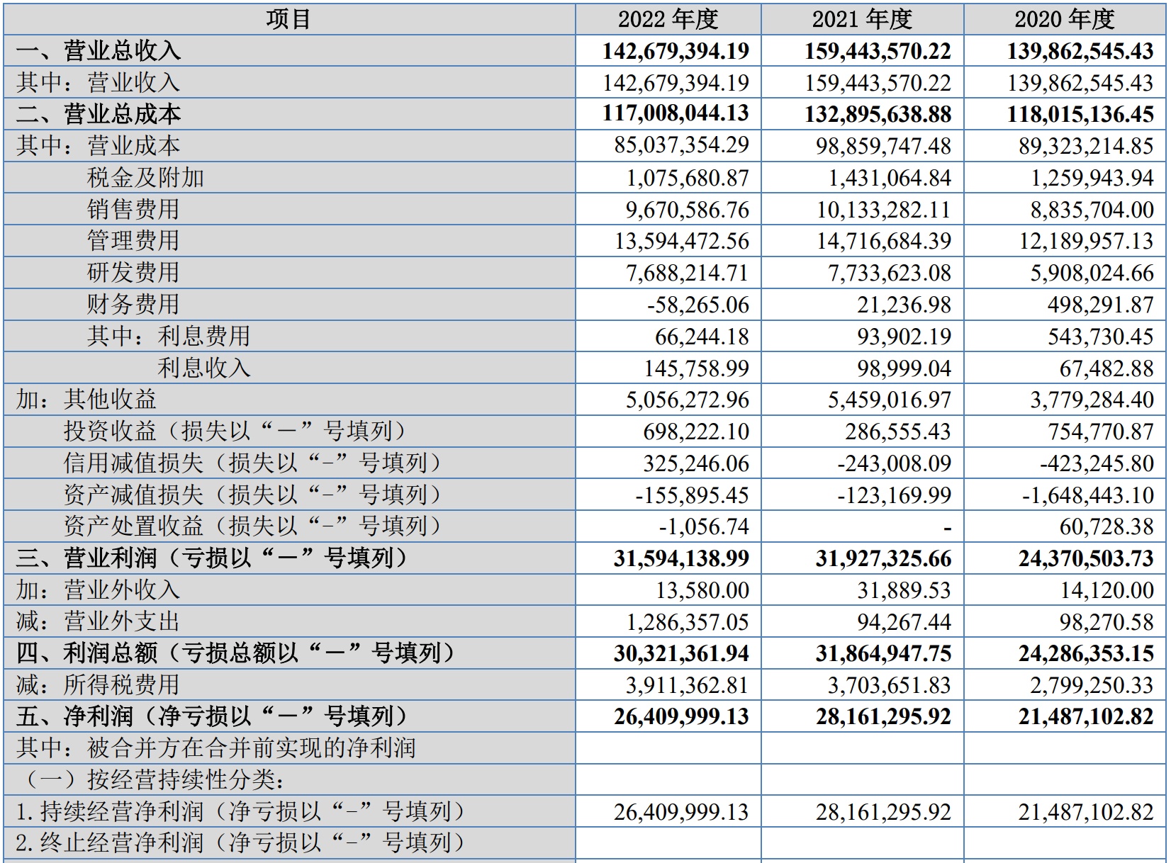 财务方面,于2020年、2021年、2022年,博迅生物实现营业收入分别约为1.4亿元、1.59亿元、1.43亿元,其中,公司实现净利润分别约为2148.71万元、2816.13万元、2641万元。