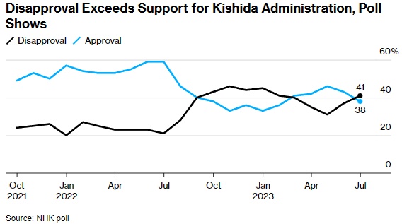 但它可能在政治上不受欢迎,因为更多的工人可能会失去工作。在日本放送协会(NHK) 7月份的一项民意调查中,对他的政府的不支持率升至41%,而支持者则降至38%。