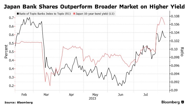 自从植田和男调整收益率以来,投资者也一直在推高商业银行的股价,因为他们预期贷款利润率将随着利率上升而扩大。该行业的一项股指自调整前一天以来上涨了约4%,相比之下,东证指数则小幅下跌。