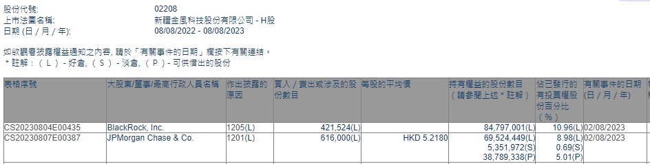 智通财经APP获悉,香港联交所最新资料显示,8月2日,小摩减持金风科技(02208)61.6万股,每股作价5.2180港元,总金额约为321.43万港元。减持后最新持股数目约为6952.44万股,最新持股比例为8.98%。