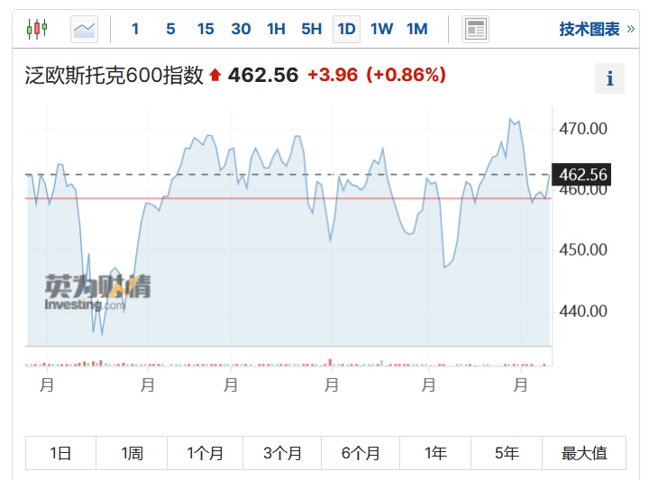 在意大利放松对银行征税的立场的影响下,截至发稿,泛欧斯托克600指数涨0.86%,触及一周以来高点。欧洲银行股则涨1.4%,意大利最大的两家银行——联合圣保罗银行和(Intesa Sanpaolo SpA)和联合信贷银行(UniCredit SpA)——的涨幅在1.7%至2.5%之间。