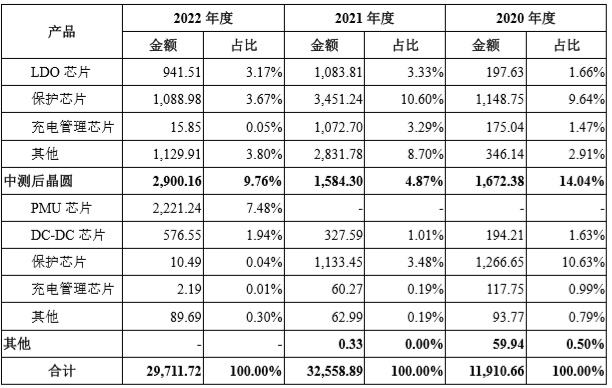 招股书显示,蕊源科技专业从事电源管理芯片的研发、设计、封测和销售,是细分领域知名的自主品牌电源管理芯片企业。公司产品以DC-DC芯片为主,同时涵盖保护芯片、充电管理芯片、LDO芯片、LED驱动芯片、马达驱动芯片、PMU芯片、复位芯片等多系列电源管理芯片,其中公司DC-DC芯片已进入众多优质终端客户供应链体系,在细分领域市场占据较高市场份额,具备突出的市场竞争力。