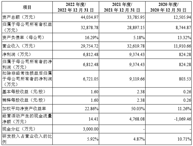 财务方面,于2020年度、2021年度、2022年度,蕊源科技实现营业收入分别约为1.19亿元、3.26亿元、2.98亿元人民币。同期,公司实现净利润分别为824.28万元、9374.43万元、6812.48万元人民币。