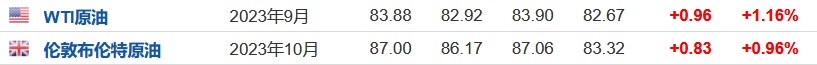 3. 截至发稿,WTI原油涨1.16%,报83.88美元/桶。布伦特原油涨0.96%,报87.00美元/桶。