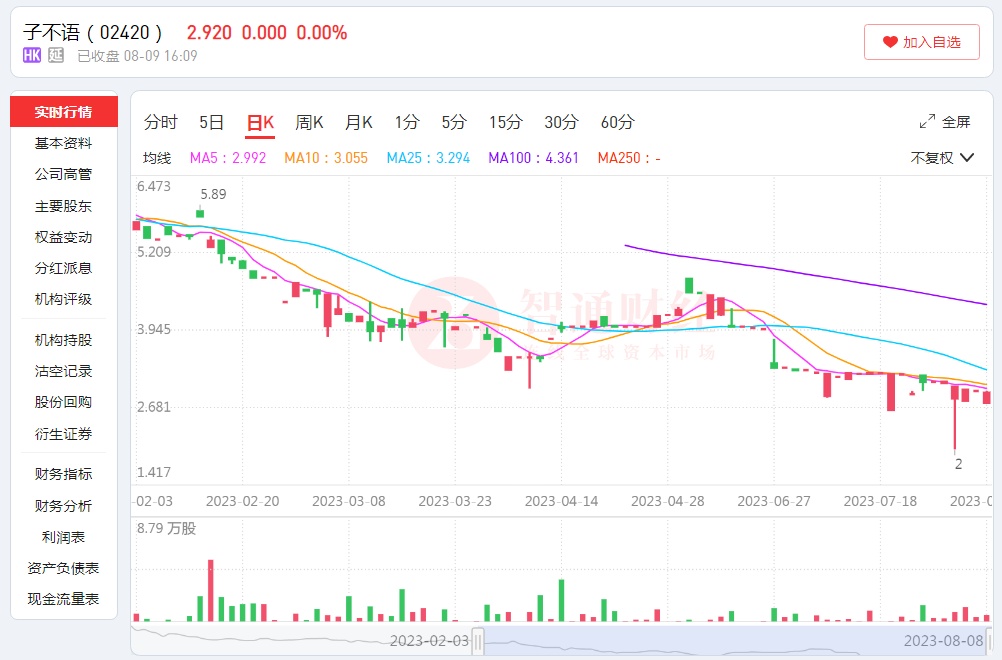 如一路震荡向下的股价走势一般,“跨境鞋服第一股”子不语(02420)的业绩也一降再降。
