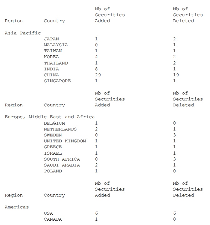 MSCI全球股票指数(MSCI ACWI)将新增61只个股,剔除46只个股。纳入MSCI新兴市场指数的市值前三大个股为韩国Ecopro Co、中油资本(000617.SZ)、公牛集团(603195.SH)。纳入MSCI全球指数的市值前三大个股为超微电脑、捷普科技、以及体彩公司Draftkings。