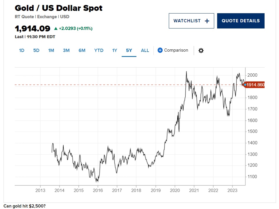 “我的目标是到2024年底金价达到2500美元,这在很大程度上与经济衰退的力量可能在今年晚些时候开始占据主导地位,并在2024年加剧这一事实有关。”Livermore Partners创始人David Neuhauser表示。“2024年,将是我看到黄金突破并达到新高甚至更高的时候。”