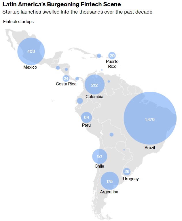 在看到亚洲金融科技的迅速崛起后,例如微信和支付宝,风险投资家纷纷涌入拉丁美洲。投资者希望在拉美州也能取得类似的成就,于是向大批初创企业(尤其是巴西的初创企业)注入了资金,目的是利用银行长期忽视的领域的数字基础设施改善。