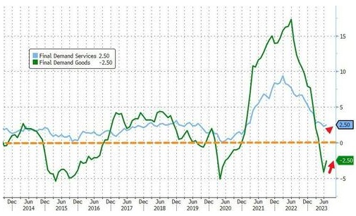7月生产者能源价格指数喜忧参半,天然气燃料的价格上涨,但柴油价格下降了7.1%。扣除食品和能源的核心商品价格在6月份下降后,与上月持平。近几个月来,商品价格走弱已经以价格下跌的形式传导给消费者。
