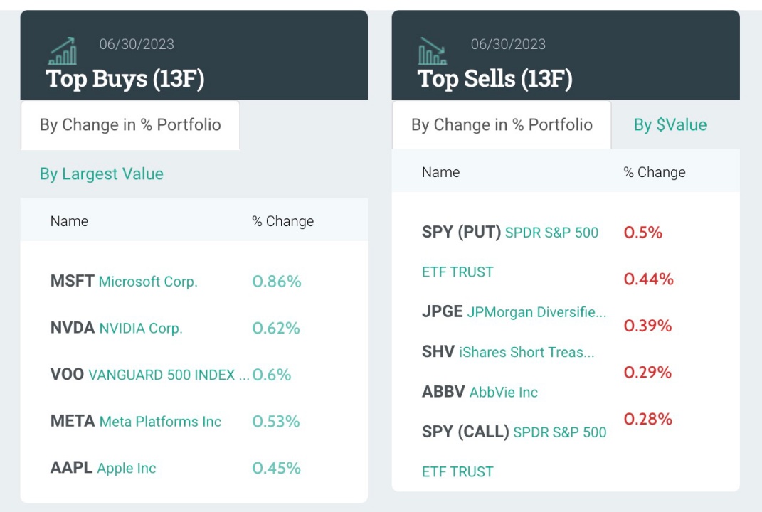 从持仓比例变化来看,前五大买入标的分别是:微软(MSFT.US)、英伟达(NVDA.US)、标普500ETF-Vanguard(VOO.US)、Meta(META.US)、苹果(AAPL.US)。