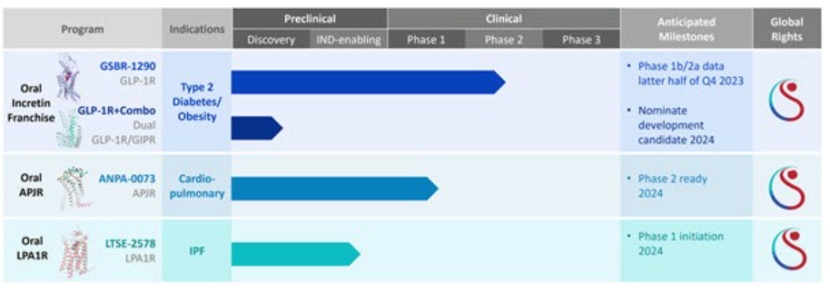 智通财经APP了解到,硕迪生物主要聚焦于GPCR高难度靶点,首发管线为小分子GLP-1R激动剂,还有GLP-1R/GIPR双靶点激动剂,后续管线还有APJR、LPA1R等。其中,核心产品GSBR-1290是一种口服的GLP-1受体小分子激动剂,该受体是治疗2型糖尿病(T2DM)和肥胖症的有效药物靶点。