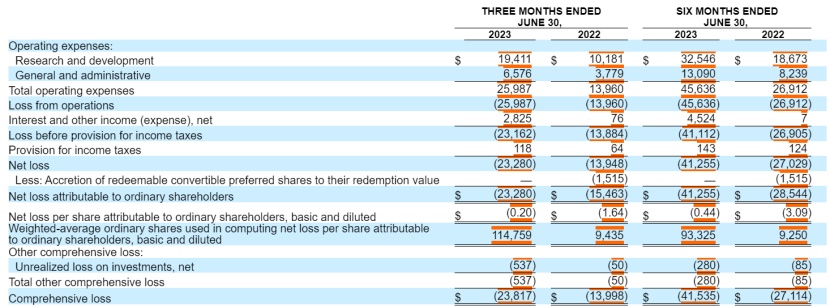 财报中研发费用的递增,侧面反映的正是以其核心产品为主的产品研发推进。数据显示,截至2023年6月30日,公司Q2季度研发费用总计1941.1万美元,同比大幅增长90.66%。本季度研发费用增加的主要原因是公司GLP-1R系列项目和其他研发项目的推进,以及员工成本的增加。