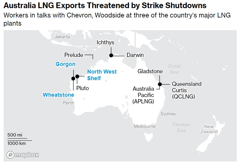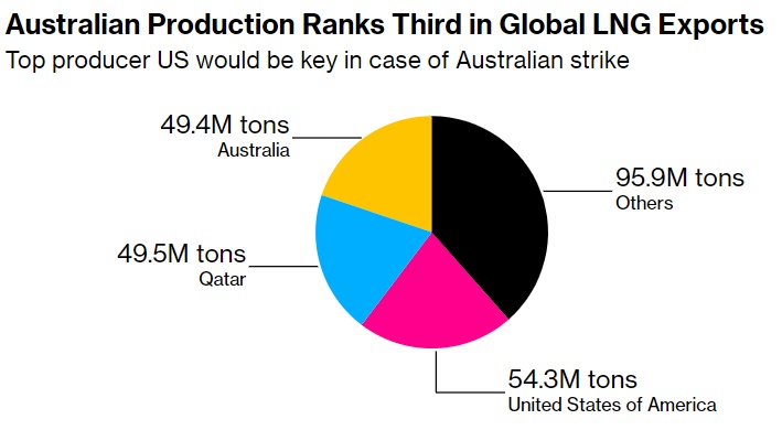 天然气供应问题重新成为全球经济的一个风险,天然气主要生产国澳大利亚可能发生的罢工有可能破坏脆弱的全球供应平衡,并使消费者的账单再次上涨。尽管北半球对燃料的需求仍然低迷,距离供暖季开始还有几个月的时间;但澳洲工厂长期关闭的前景导致天然气批发价格飙升,此外,今年夏天发生的极端天气事件对能源系统构成了考验,其他大型生产商也遭遇了挫折。