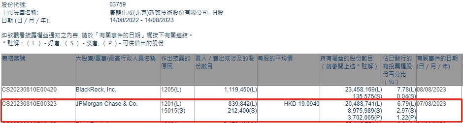 智通财经APP获悉,香港联交所最新资料显示,8月7日,小摩减持康龙化成(03759)83.9842万股,每股作价19.0940港元,总金额约为1603.59万港元。减持后最新持股数目约为2048.87万股,最新持股比例为6.79%。