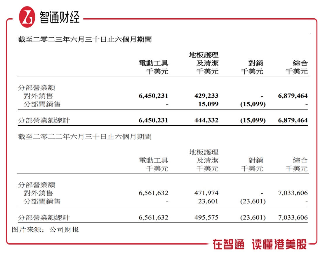智通财经APP观察到,创科实业2023年上半年业绩营业额下滑,主要为消费者业务双位数下滑带来的影响,该公司旗舰品牌MILWAUKEE仍增长 8.7%,而分业务看,电动工具业务表现韧性,营业额仅下滑1.7%,地板护理业务则下滑10.3%。地板护理业务不赚钱,收入份额持续下降,上半年已下降至6.45%。