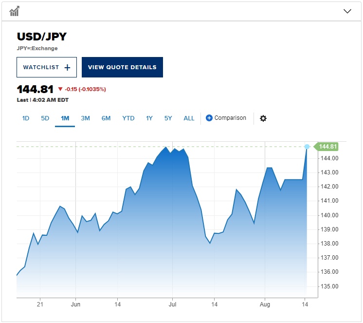 智通财经APP获悉,周一,日元兑美元汇率突破了145大关,这是自2022年11月以来的首次。上周五,日元一度触及同样的关键心理支撑位。