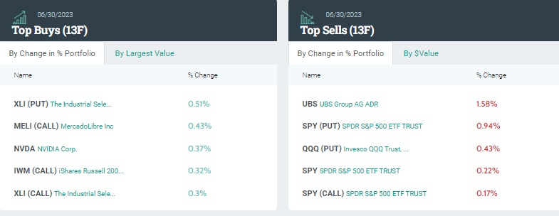 从持仓比例变化来看,前五大买入标的分别是:工业指数ETF-SPDR看跌期权(XLI.US,PUT)、拉美电商巨头MercadoLibre看涨期权(MELI.US,CALL)、英伟达、iShares罗素2000指数ETF看涨期权(IWM.US,CALL)、工业指数ETF-SPDR看涨期权(XLI.US,CALL)。