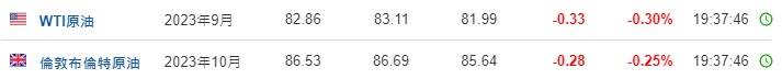3. 截至发稿,WTI原油跌0.30%,报82.86美元/桶。布伦特原油跌0.25%,报86.53美元/桶。