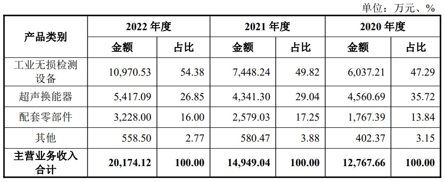 招股书披露,多浦乐是专业从事无损检测设备的研发、生产和销售的高新技术企业,为工业无损检测设备及检测方案的专业提供商,产品包括工业超声相控阵检测设备、自动化检测设备、超声换能器、定制化检测分析软件及其他检测配套零部件等。