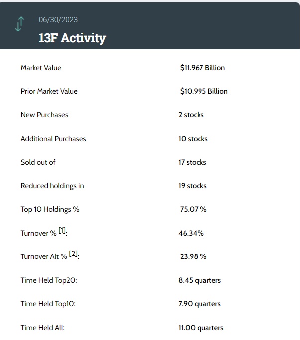 据统计,老虎环球基金第二季度持仓总市值达119.67亿美元,上一季度总市值为109.95亿美元,环比增长约8.8%。该公司在二季度的投资组合中新增了2只个股,增持了10只个股,减持了19只个股,清仓了17只个股。其中前十大持仓标的占总市值的75.07%。