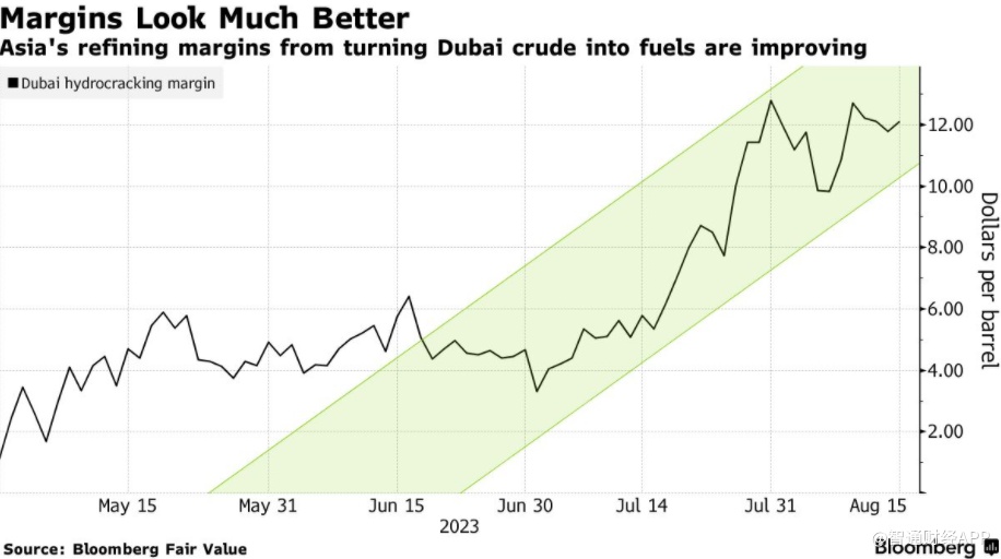 炼油利润率最近几周有所上升。国际能源署(IEA)上周五表示,6月份全球石油消费量飙升至创纪录水平,今年晚些时候平均消费量应会进一步上升。