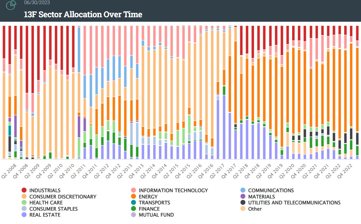 从持仓风格来看,黑石长期以来偏好能源类股票,其次是工业类和公用事业类股票。