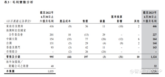 除了出海战略外,涨价以及折扣减少才是佐丹奴利润大增的主要因素。据财报披露,2023上半年,佐丹奴毛利率较2022年的55.1%上升3.6个百分点至58.7%。得益于产品涨价以及折扣的减少,佐丹奴在各个国家的毛利销售都出现明显的上涨。