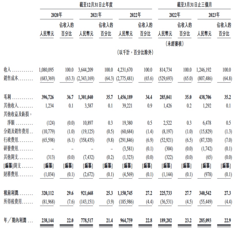 财务方面,茶百道的表现也非常强劲。收入从2020年的人民币10.80亿元增长至2022年的人民币42.32亿元,年复合增长率达到97.9%。收入从截至2022年3月31日止三个月的人民币8.15亿元增长到截至2023年3月31日止三个月的人民币12.46亿元,同比增长了53.0%。2020年至2022年,净利润的年复合增长率达到101.3%。截至2022年及2023年3月31日止三个月,净利润同比增加50.7%。