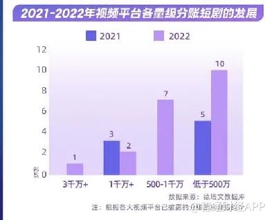 据优酷2023年1月发布的《优酷内容开放平台2022年度报告》,2022年短剧分账票房1000万元以上的头部作品稳定出现,500万—1000万元的中坚层异军突起,500万元以下的腰尾部作品规模逐步扩大,市场格局逐步明朗,头部效应初显。