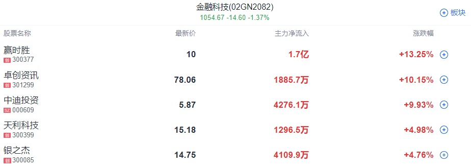 金融科技板块冲高回落,慧博云通20%涨停,赢时胜、卓创资讯、中亦科技等大幅冲高。