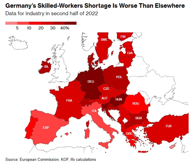 Ifo表示,服务业受到的冲击尤其严重,四分之三的法律和会计公司找不到所需的求职者。交通、建筑和工程方面的人才短缺也创下了纪录。