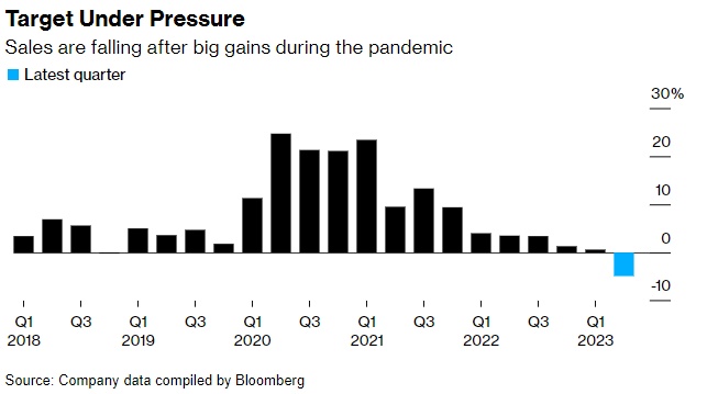 塔吉特主要销售消费电子产品和家居装饰品等非必需消费品,由于消费者在价格上涨的情况下限制了对非必需品的支出,该公司一直试图通过增置更多的日常用品来平衡其商品销售组合。财报数据显示,塔吉特Q2同店销售额下降5.4%,比分析师预测的3.8%降幅更糟糕。消费这对于美容产品、食品和饮料的需求有所上升,但这似乎不足以抵消众多非必需品销售疲软。