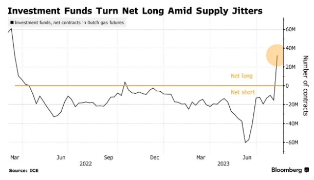 此举标志着欧洲天然气市场的投资者情绪发生了急剧转变。在今年夏季早些时候,欧洲天然气市场空头头寸出现激增,当时,大多数行业观察人士预计,由于供应健康和需求疲软,天然气价格将下跌。
