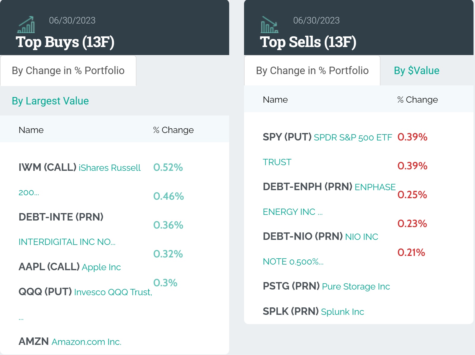 iShares罗素2000指数ETF(IWM.US)、Interdigital收益票据、苹果看涨期权(AAPL.US,CALL)、纳指100ETF看跌期权(QQQ.US,PUT)和亚马逊(AMZN.US)