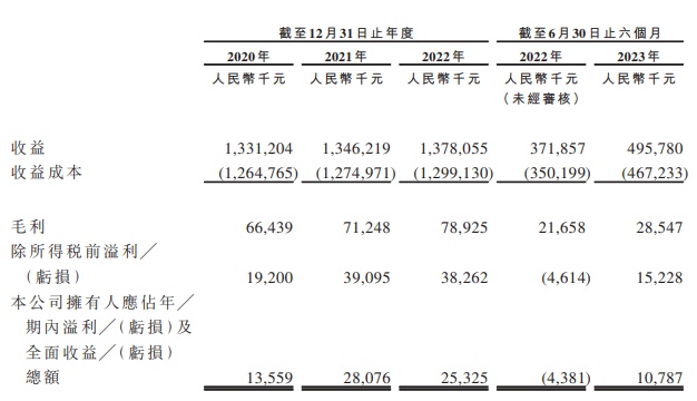 财务方面,中深建业于2020年度、2021年度、2022年度、2022年截至6月30日止六个月及2023年截至6月30日止六个月实现收益分别约为13.31亿元、13.46亿元、13.78亿元、3.72亿元、4.96亿元人民币;实现期内溢利分别为1355.9万元、2807.6万元、2532.5万元、-438.1万元、1078.7万元人民币。