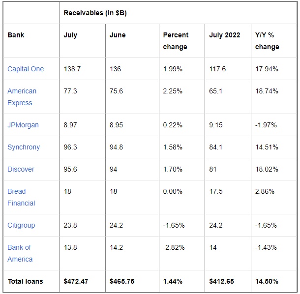 杰富瑞分析师John Hecht在月度信用监测报告中写道表示,本月的一批信用卡报告“不出所料……没有惊喜,”“7月份信用卡的结果符合正常化的预期,”拖欠和净冲销上升;强劲的贷款需求;他说,支付率正在下降,但仍高于大流行前的水平。