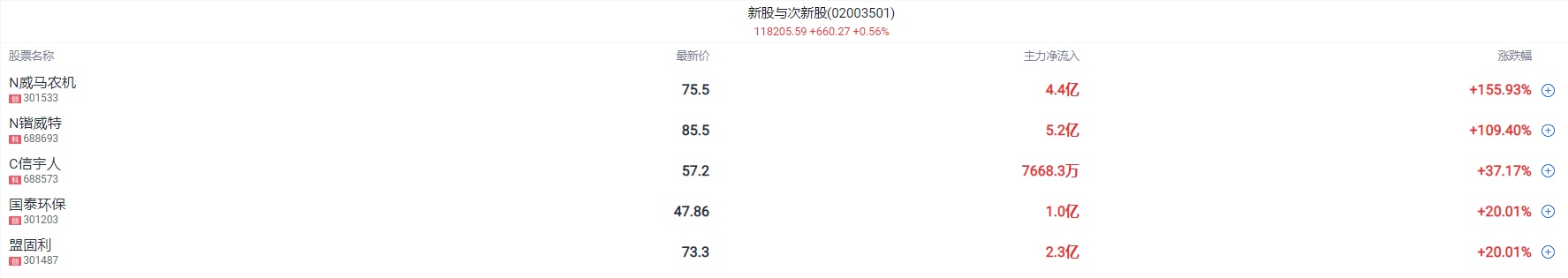 次新股大幅冲高,长青科技5连板,盟固利20%三连板,碧兴物联、光格科技等多股涨停。