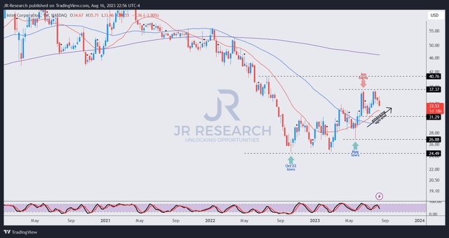总的来说,JR Research认为,人工智能霸权之战远未结束,英特尔似乎也不会落后太多。从股价方面看,该机构认为,31美元的支撑位是有建设性的。随着英特尔中期上行倾向的显现,该机构预计该股不会重新回到27美元的水平(2023年5月的低点),除非Gelsinger及其团队大幅错过执行目标。