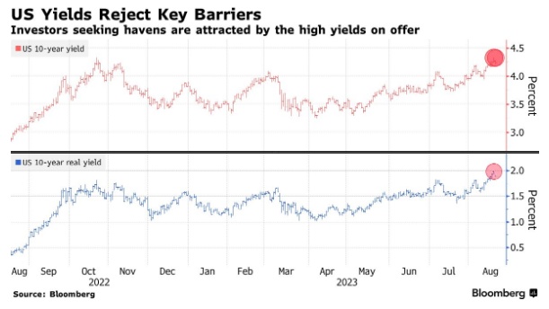 不过,在周四英国30年期国债收益率创下15年高点,以及美国30年期国债收益率创下2011年以来的最高水平后,本周全球收益率仍处于高位。本周债市的抛售由美国主导,此前一系列强劲的经济数据和鹰派的美联储会议纪要引发了在政府大量发债之际,利率可能会在更长时间内保持较高水平的前景。