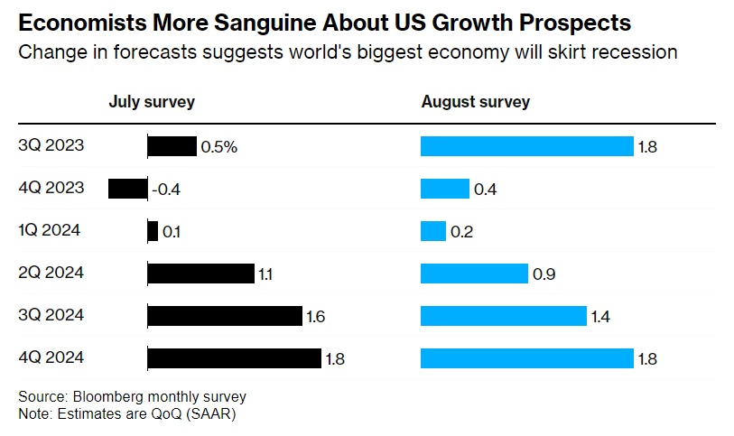 经济学家们对美国经济增长前景愈发乐观——预测的变化表明世界最大的经济体将避免衰退