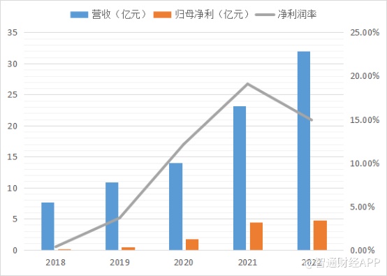 大举扩张的战略显然成功推动了公司业绩快速增长。从近年业绩来看,公司营收在5年间从7.66亿元增长到了31.96亿元,单2022年这一年间同比增幅就达到了38.02%;但在净利方面,同年公司净利润率也首次出现下滑,股东应占溢利为4.77亿元,仅同比增加8%。